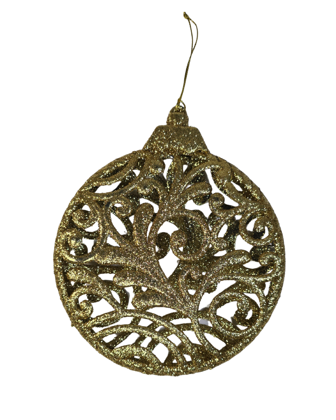 Eleva tu decoración navideña a un nuevo nivel de lujo con esta esfera de filigrana dorada. Con su diseño exquisito y un acabado escarchado que deslumbra, este adorno es mucho más que un simple accesorio: es una obra de arte.