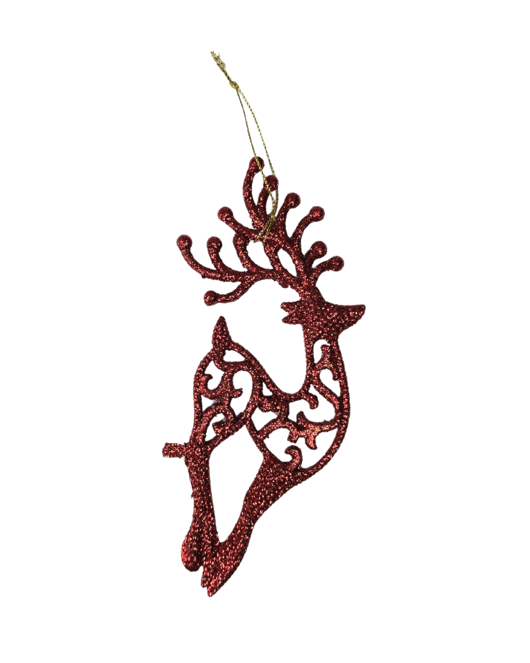 Eleva tu decoración festiva con este adorno de reno calado. Su intrincado diseño y el acabado con purpurina añaden un toque de sofisticación a tu árbol de Navidad o a cualquier rincón de tu hogar. Colócalo en la ventana, en la puerta o en tu árbol para crear un ambiente mágico y lleno de estilo.
