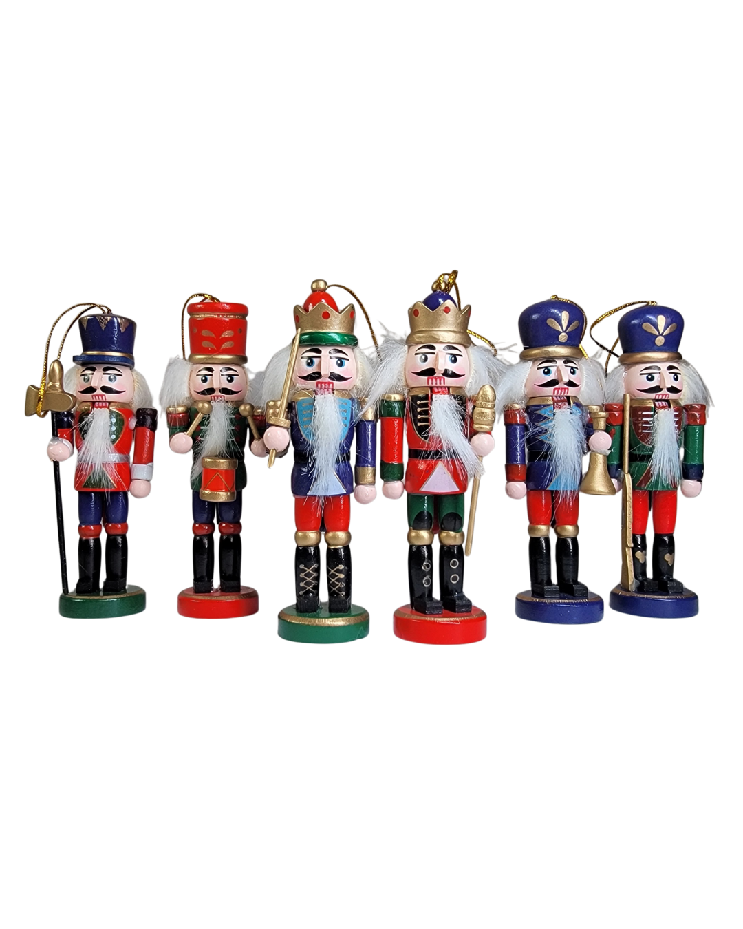 Descubre la magia de la Navidad con nuestra encantadora colección de adornos de Cascanueces. Estos tesoros atemporales, tallados y pintados a mano con un detalle exquisito, son mucho más que simples decoraciones; son el corazón de la historia clásica que trae alegría y fantasía a tu hogar.